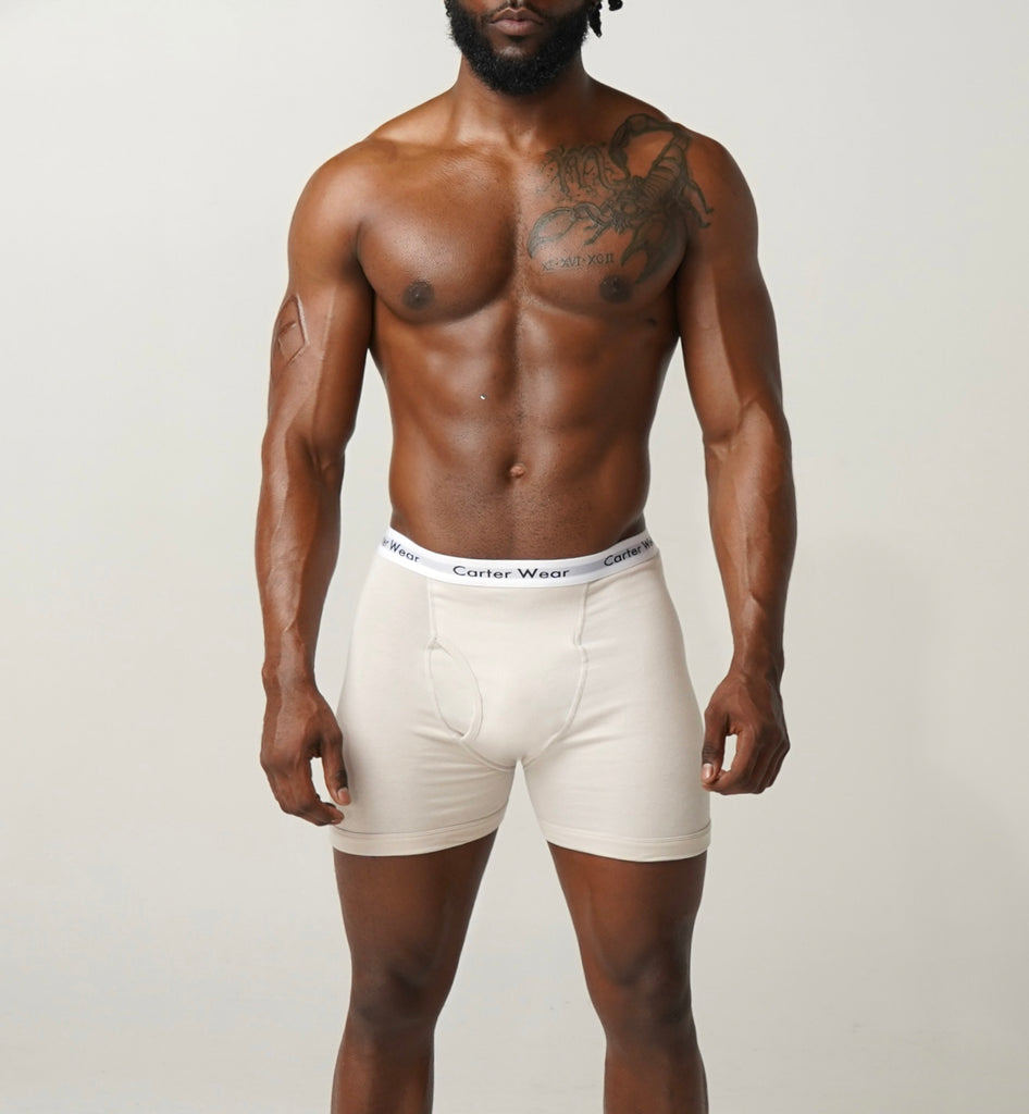 Introducing our new Ribbed Cotton Boxer Brief featuring the iconic Carter Wear waistband. Elevate your comfort game with unparalleled softness, support, and improved flexibility and breathability. Our "Fit Like a Glove" design ensures a snug yet comfortable fit, making it ideal for both casual lounging at home and high-intensity workouts. These items are available in true-to-size fits and are composed of 95% Cotton and 5% Spandex for optimal comfort and stretch.
