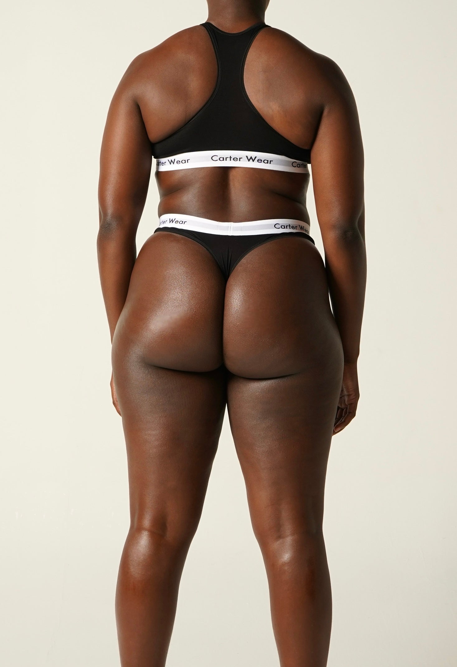 NEW Design - Our signature Thong features a plunging neckline, sleek razor back design, comfort band, and the signature Carter Wear branding. Experience next level comfort, softness, and support with enhanced stretch and breathability. This product is produced with our “Fit Like a Glove” design and it is perfect for lounging around the house yet versatile enough to wear for a workout. Item will fit true to size